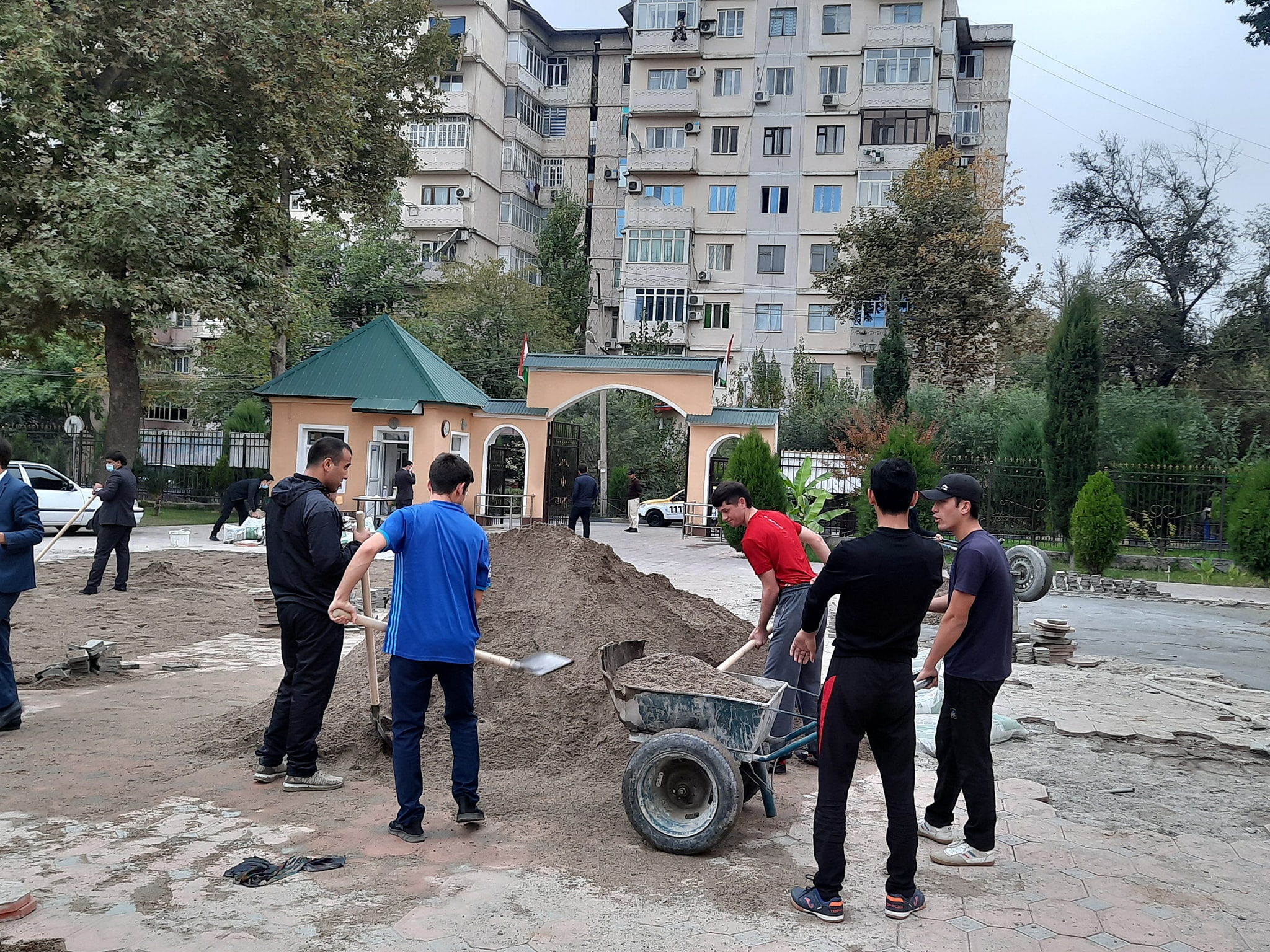 Дар ин маъракаи ободонӣ, кормандон ва омӯзгорону донишҷӯёни факултаҳо фаъолона иштирок намуда, ҷуйборҳои гирду атрофи муассисаро тоза, бехи дарахтонро нарм ва саҳни донишкадара аз нав таъмир намуданд.
