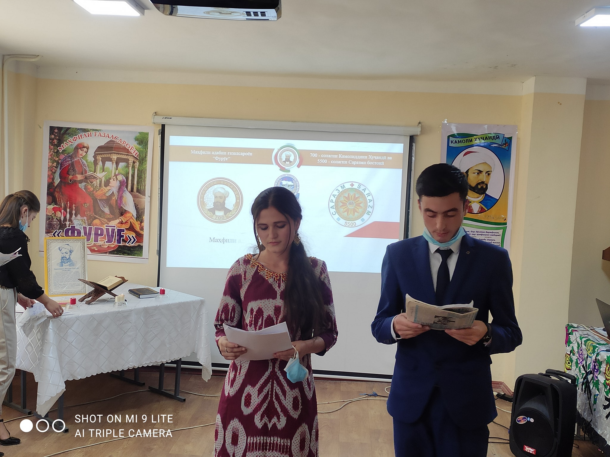 Баъдан, аз ҷониби донишҷӯён оид ба рӯзгору осору афкори наҷиби Камоли Хуҷандӣ шеър, суруд ва саҳнаҳои тарбиявӣ пешниҳоди ҳозирин гардида, маҳфил дар сатҳи баланд ҷамъбаст шуд.