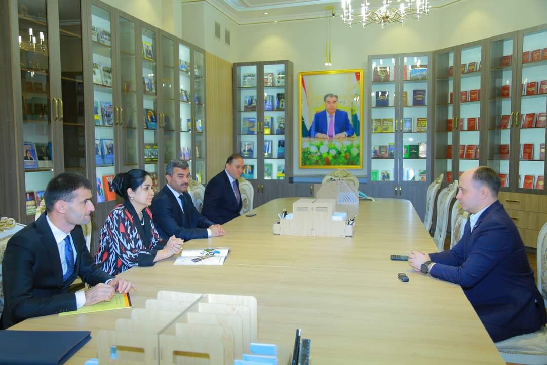 Ректори Донишгоҳ, профессор Жило Гулназарзода нахуст Денис Гутс (Гуц) муовини ректори Донишгоҳи федералии Сибири Федератсияи Русияро ба ҳузур пазируфт.